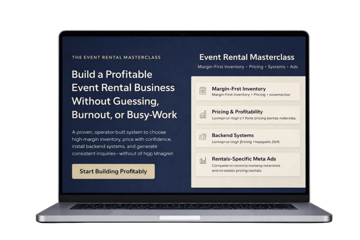 Perfect for aspiring and current event rental owners who want predictable profits and time freedom.